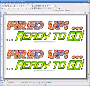 Fired UP ... Ready to GO bumper stickers 11 by 41/4 These are intended to be printed on Bumper Sticker Paper, I found mine at Office Depot. You need to have them cut after printing. |
